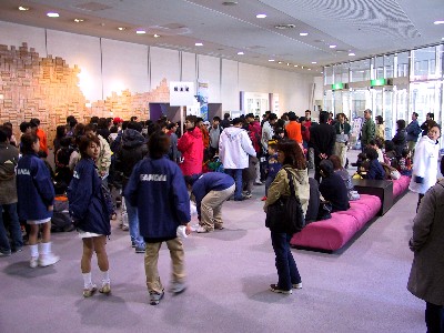 やっとのことで、登録が済んで、こんどは予選出場者の控え所に行列です(^_^;)
