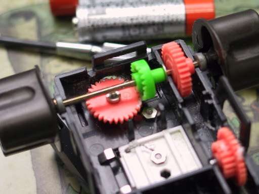 減速して、電池ボックスを回転するためのトルクを稼いでいます。