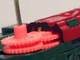 コマはギア変更により3000rpmと12000rpm※に切り替え可能。 ベアリング支持により高速回転に対応 時々相手ギアのボディカバーを弾き飛ばす。 ※12000rpmは回転中怪我をする恐れがあり危険なので封印中 |