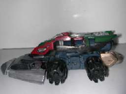 フロントウェポン左右にウレタン+プラ板で制作したシールドを装備。 中量級ギアながらも相手の攻撃をかなり受け止めます。 ただし、すくい上げ効果は全然期待できません。 |