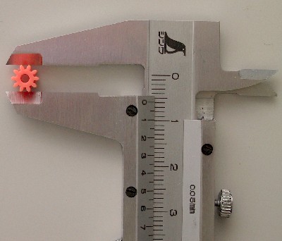 ノーマルピニオンギアが5.75mm、カスタムモーターのピニオンギアが5.85mmと、なんと0.1mmも大きい!