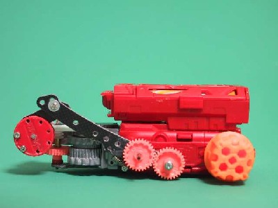 ターミネートローラーのバズソーがそのまま残ってる(^_^;) 回転板に挿してあるビスの位置を変更することで動作のタイミングをプログラミングできます。 |